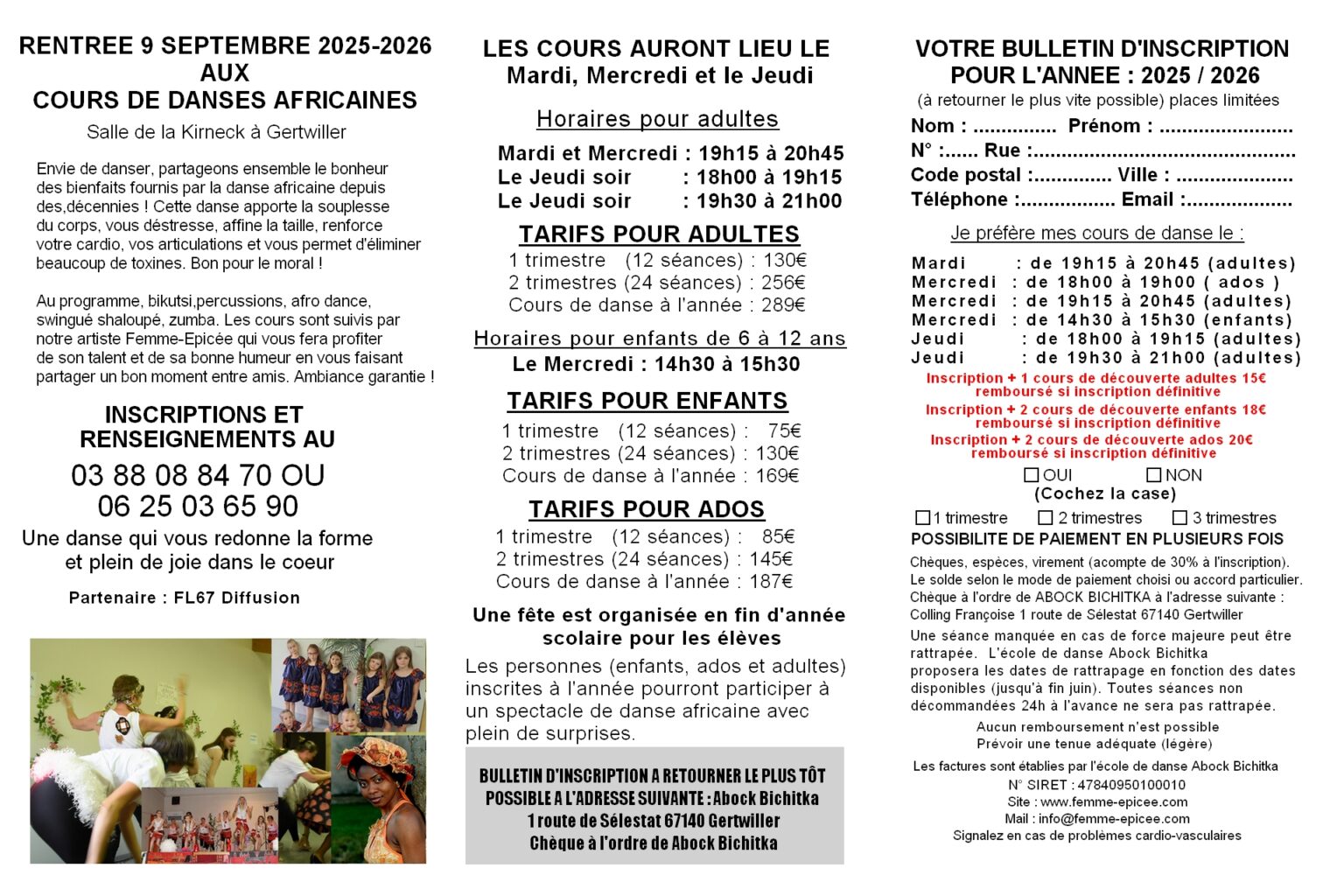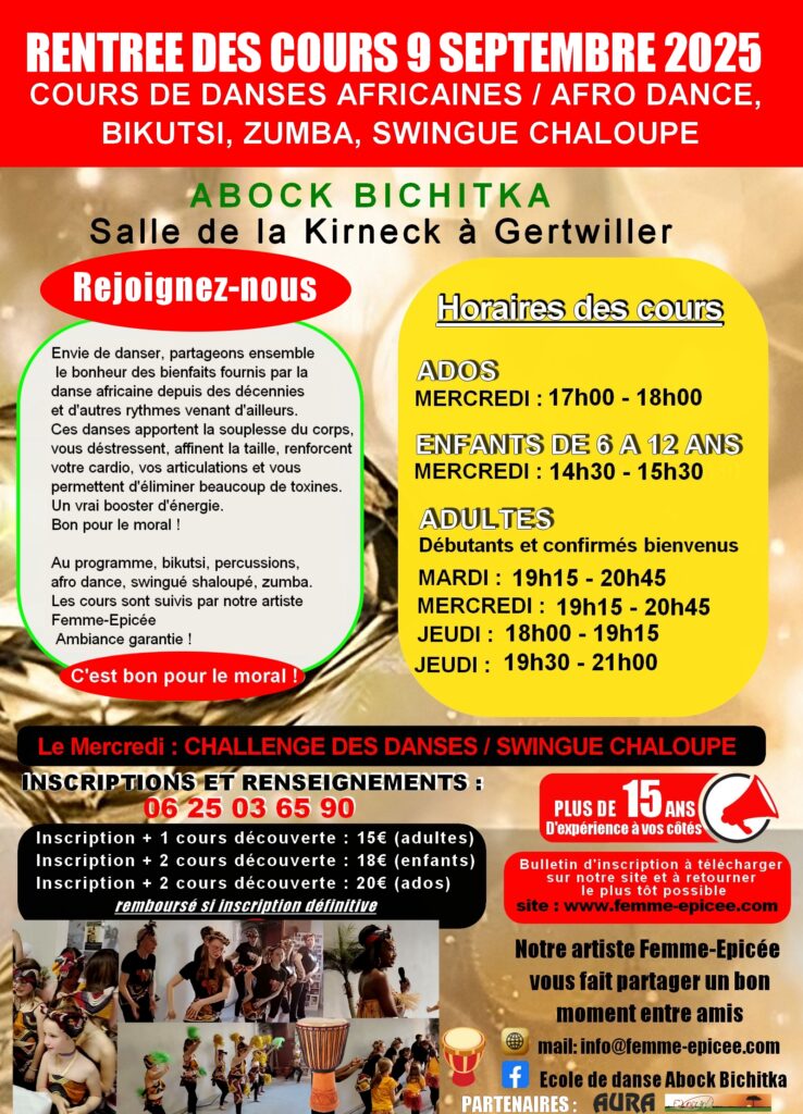Ecole de danse africaine Abock Bichitka à Gertwiller depuis plus de 15 ans. Venez vous dépenser et danser avec nous avec le sourire